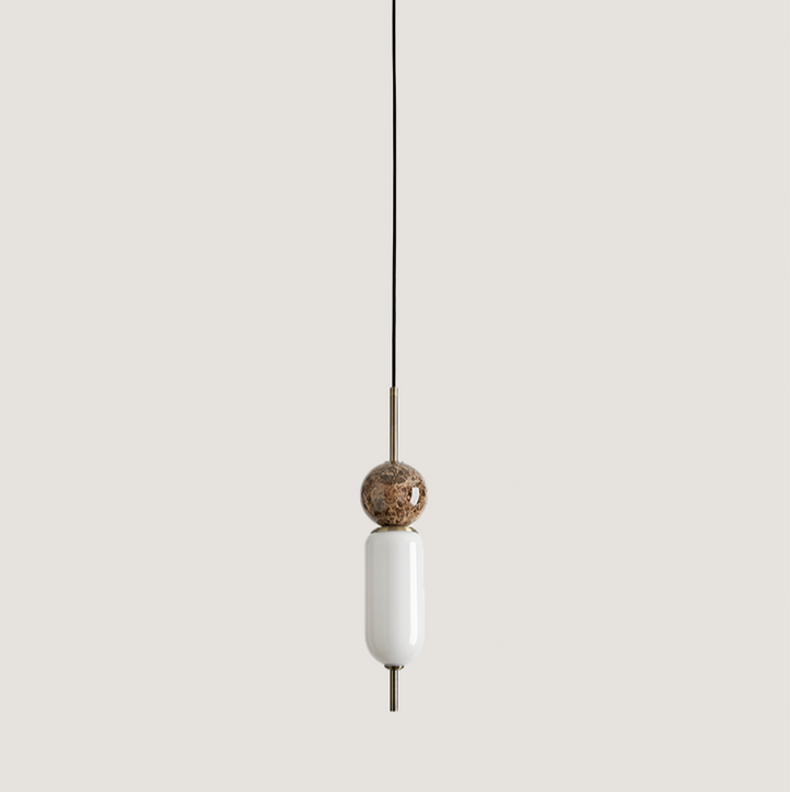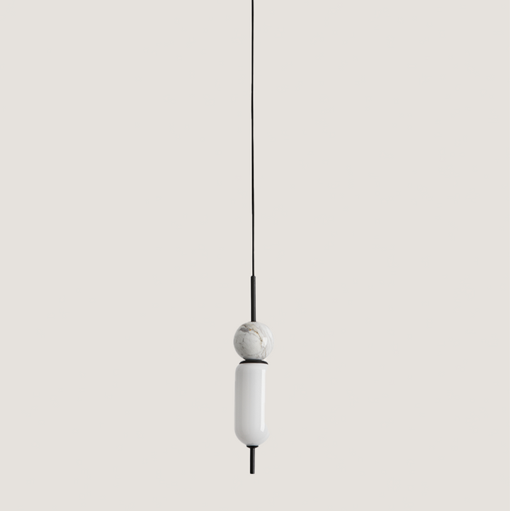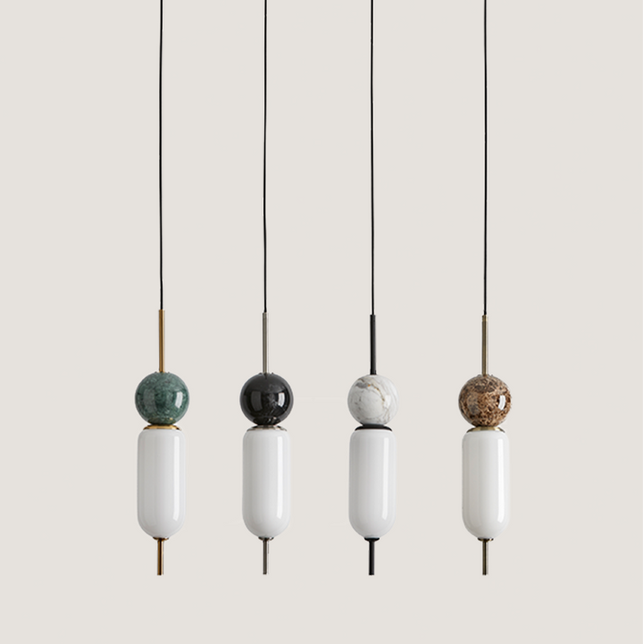 Anet is a pendant lamp designed by Agustìn Gascòn made of steel, marble and blown glass. The precious materials and design make it a unique collection that is particularly suitable for illuminating and decorating any kind of environment.