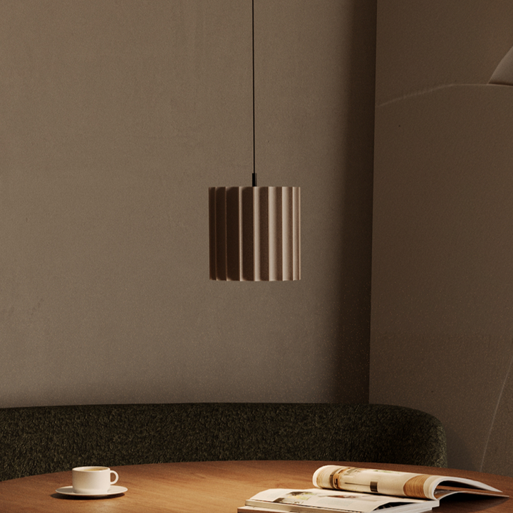 The Dena Pendant Light is a minimalist statement piece, seamlessly blending sculptural form with organic texture. Its ribbed cylindrical shade creates a captivating play of light and shadow, adding warmth and depth to any interior. Suspended by a slim cord, it emits a soft, inviting glow, ideal for dining areas, reading nooks, and refined hospitality settings. Ribbed cylindrical shade for a dynamic light effect. Minimalist yet organic design suits modern and natural interiors. Soft, warm glow, perfect for intimate settings.
