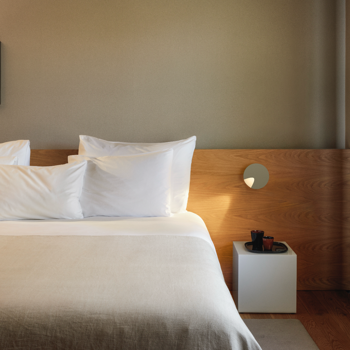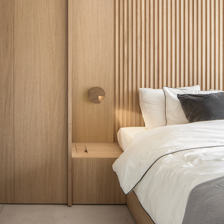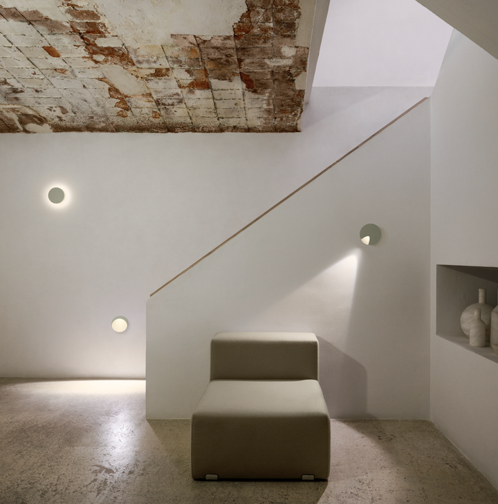 Compact, glowing circles trace points of light across the wall with the Dots collection. Deployed alone like a sparkling jewel or in combination to create a glowing galaxy, the Dots wall luminaires provide personalised lighting solutions in four styles: A graphic, directional lamp, a reading light, and two versions of ambient lamps. Connecting a space with their intimate landscape of beams and halos, they create a melody of light like musical notes in concert with one another.